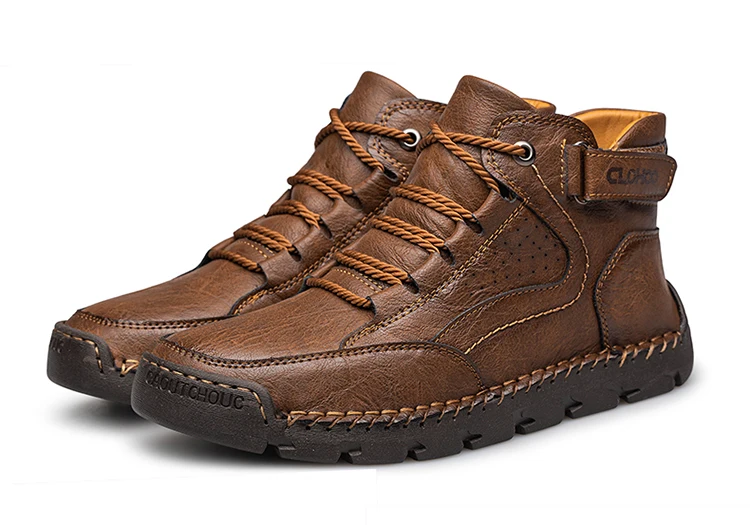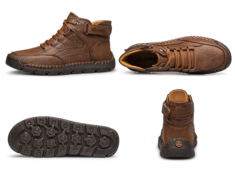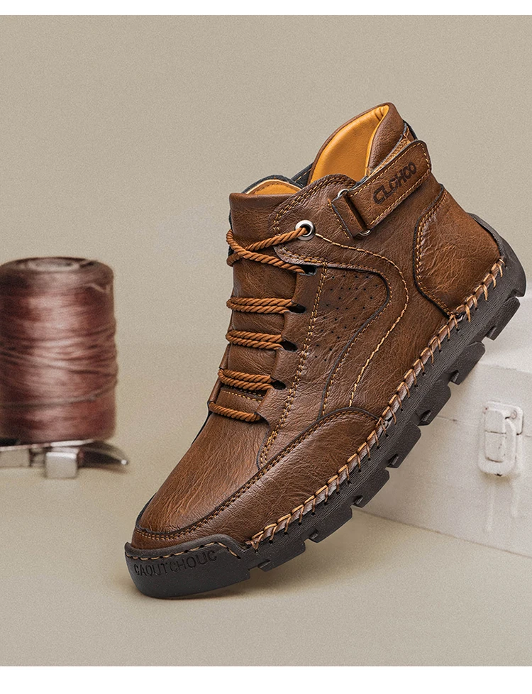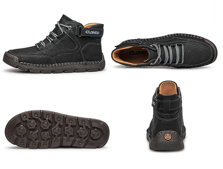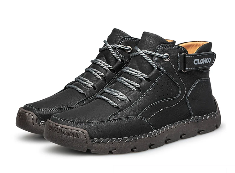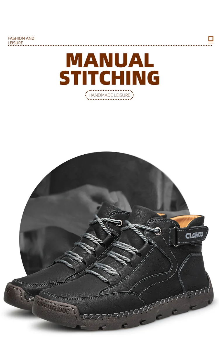 CLOHOO Handgenähte High-Top-Stiefel für Herren, kurze Stiefel, Leder, Herren-Wanderstiefel, Marke Specialty Edition